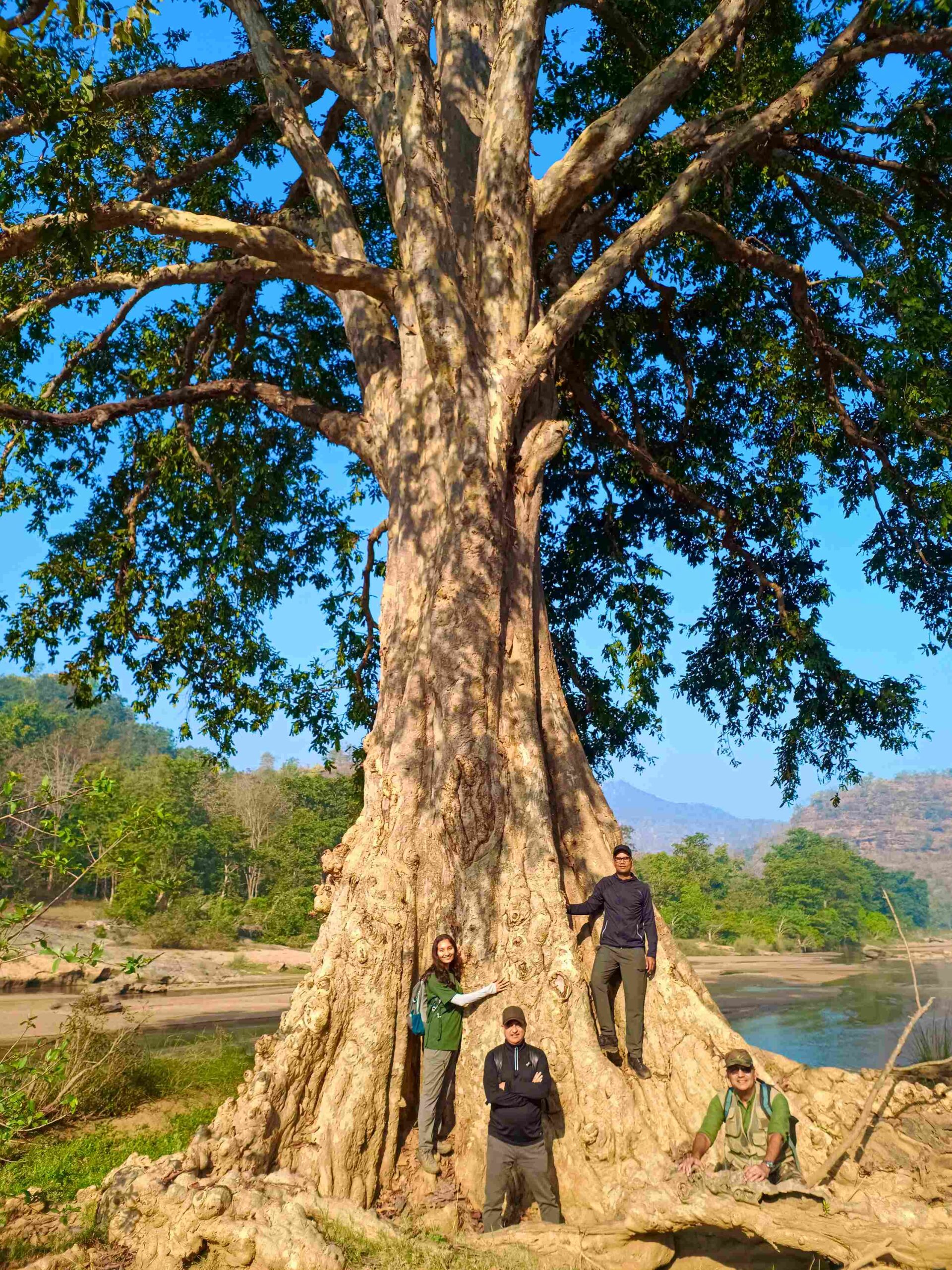 We crossed clear streams barefoot, dipping them in the Denwa river’s cool water on a pleasant January morning as the sun ascended in the sky, and paused to hug a gorgeous Arjun tree that invited us into its fold. Satpura is a biodiversity hotspot for birds, and the air was alive with shrikes, drongos, and several raptors. Butterflies spiraled around sunlit glades, and indulged in mud puddling. Once, we found fresh pugmarks so perfectly defined, and were told that a big cat had passed just moments earlier.